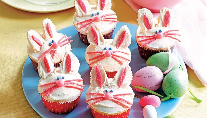 These cupcakes are ideal for Easter, but you can never go wrong with bunny cupcakes at a children's birthday party. You can decorate your cupcakes with marshmallows, M&Ms, chocolate sprinkles, sour candy - whatever you like!