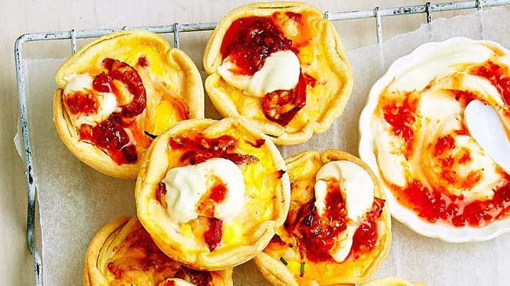 Learn how to bake and enjoy the sharp flavours of capsicum and sour cream mixed with chicken and corn served in a mini, decadent quiche.