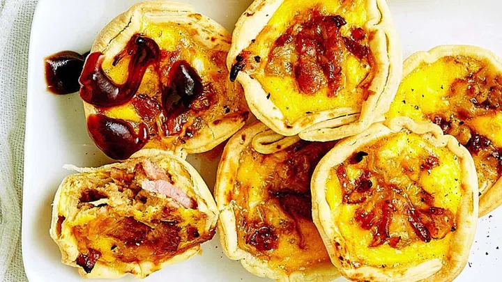 Crumbly and buttery quiche crust combined with smokey bacon and barbeque sauce make for a delicious party snack.