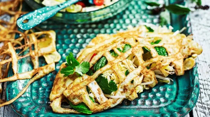 Cute cross-hatched egg wraps packed full of wombok, bean sprouts, chilli, beans and more are the next quick and low-carb recipe you need to achieve your healthy living goals. From protein and fibre to flavour and texture, this snack is also complete with a light, piquant and refreshing lemongrass dressing, then served with lime wedges, staying true to its Vietnamese-inspired character.