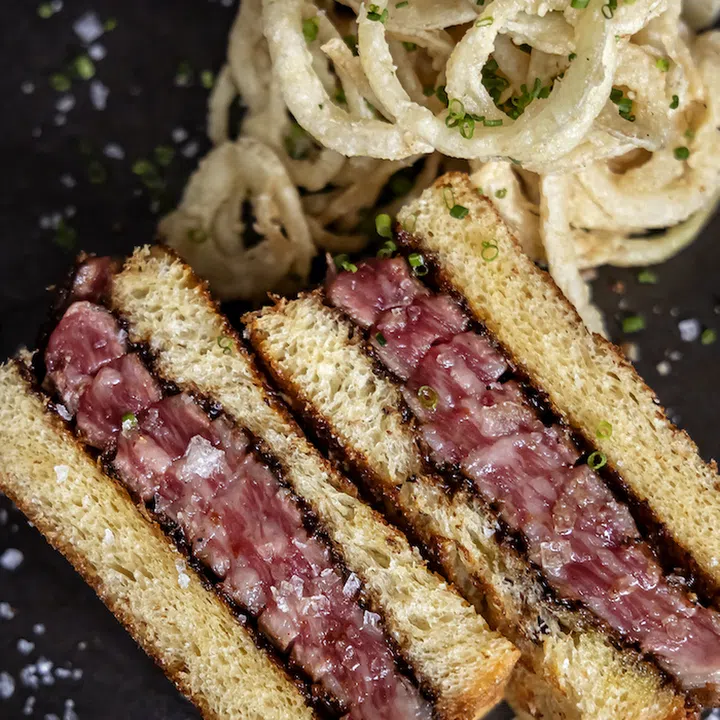 Small slabs of wagyu ribeye, lightly seasoned and grilled over an applewood fire, arrive sandwiched between thick slices of buttered and toasted bread. A gentle smearing of black garlic mayonnaise and a side of fried onion rings ensure this may be the most luxurious sandwich you’ll have this season.