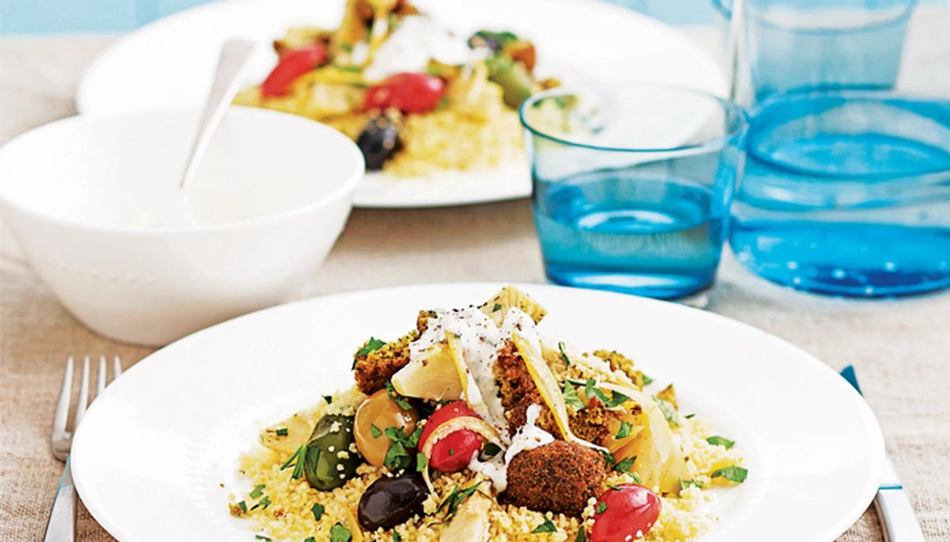 Why call takeout when this falafel couscous plate, packed with European flavours, only takes 10 minutes to put together! You got to try it to believe it.