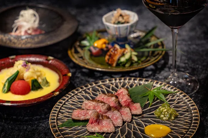 The six-course set dinner kicks off with appetisers like Kabayaki-style freshwater eel, and fatty tuna crowned with luxurious Hokkaido uni and grilled seaweed. Next, the Toriyama Umami Wagyu Carpaccio showcases beef from the Gunma prefecture, elevated with briny Russian Sturgeon caviar, umami shio kombu and citrusy yuzu zest. And for the main event, you can expect to dine on the smoke-imbued Charcoal-Grilled Toriyama Umami Wagyu Steak.