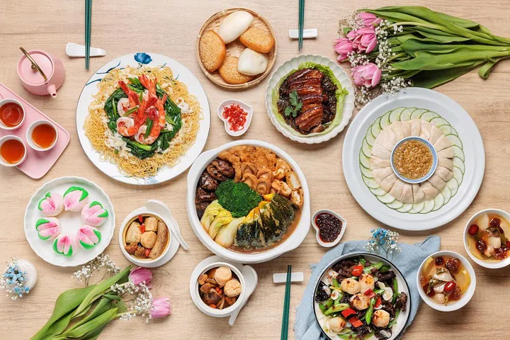 For a lighter meal, there's the six-course “Heart-Warming Kinship Platter”, spotlighting favourites like the Sauteed Dragon Grouper Roll with asparagus and lily bulbs, and Fragrant Baked Sliced Pork Spare Ribs with kumquat sauce.