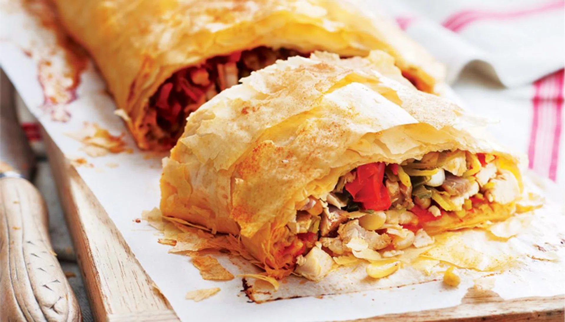 These crunchy filo parcels with turkey and vegetables make great starters or nibblers for a dinner party.