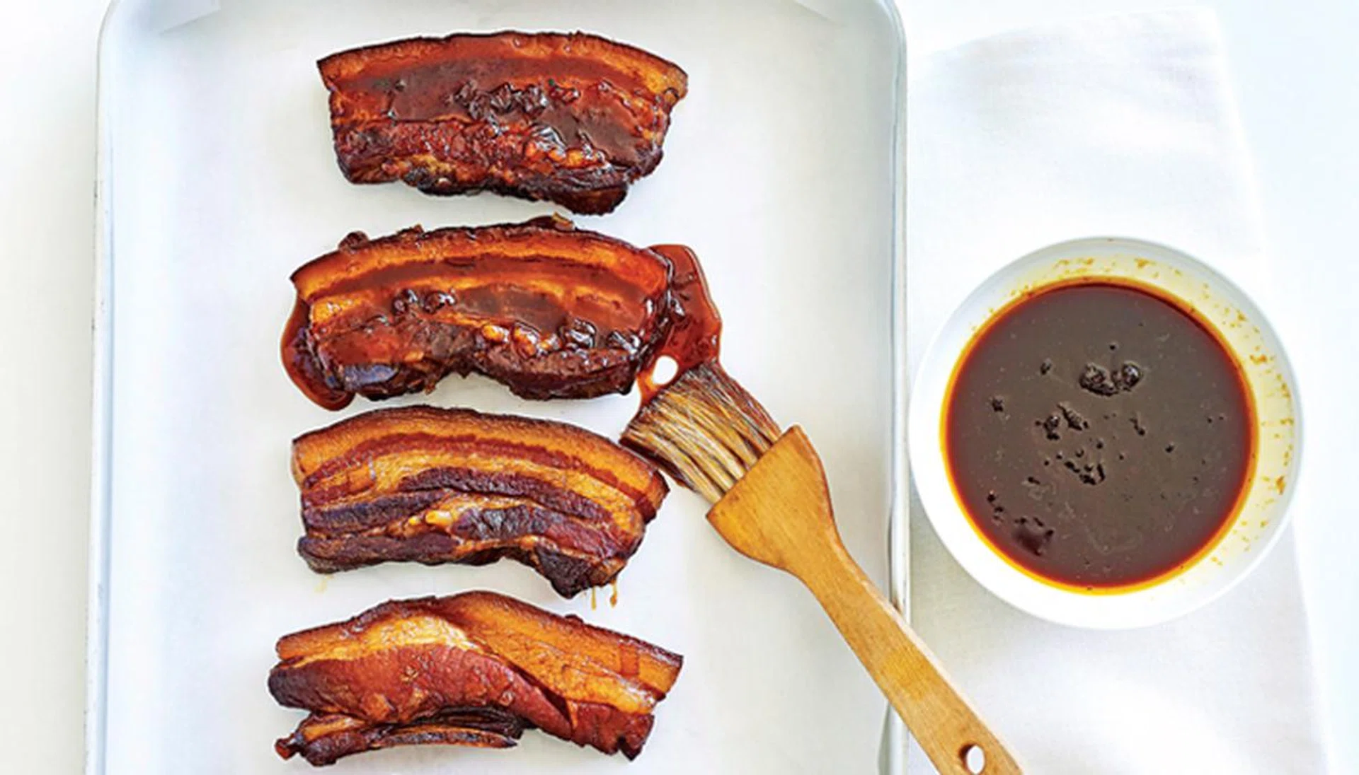 1 medium brown onion, chopped ♥ 5 cloves garlic, chopped finely ♥ ½ cup plum sauce ♥ 1 cup hot chilli sauce ♥ 1 cup light soy sauce ♥ ½ cup dry sherry ♥ ½ cup honey ♥ 10 (1.8 kg) pork spare ribs
