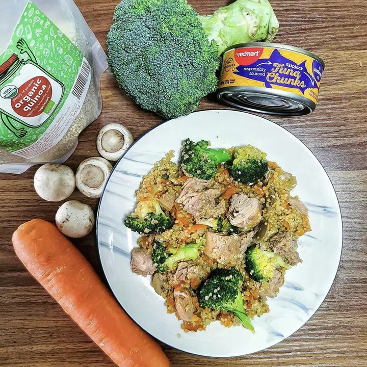 Lirong’s go-to five ingredients or less recipe is some kind of stir fry with noodles or rice. The latest of her choosing is a tuna quinoa stir fry. You just need quinoa, your pick of vegetables that you have, canned tuna, olive oil, and oyster sauce. Lirong shares that “Even with little ingredients, I make sure it's a balanced meal too.”