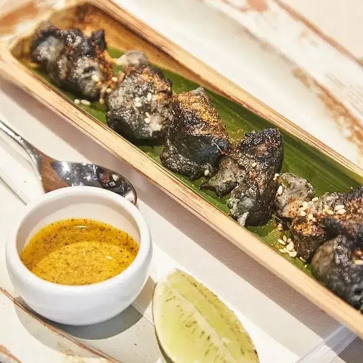 Another intriguing item, the aromatic Kong Shop Chicken is bamboo-skewered, marinated in black sesame paste, and cooked on a binchotan. Pritha kept this recipe from a time when she visited the Khasi tribe in the hilly northeastern state of Meghalaya. The creation is inspired by ‘kong shops’, quintessential eating houses run by the tribe’s women. Kong means ‘auntie’ in Khasi, a language spoken by about 900,000 living in the region.