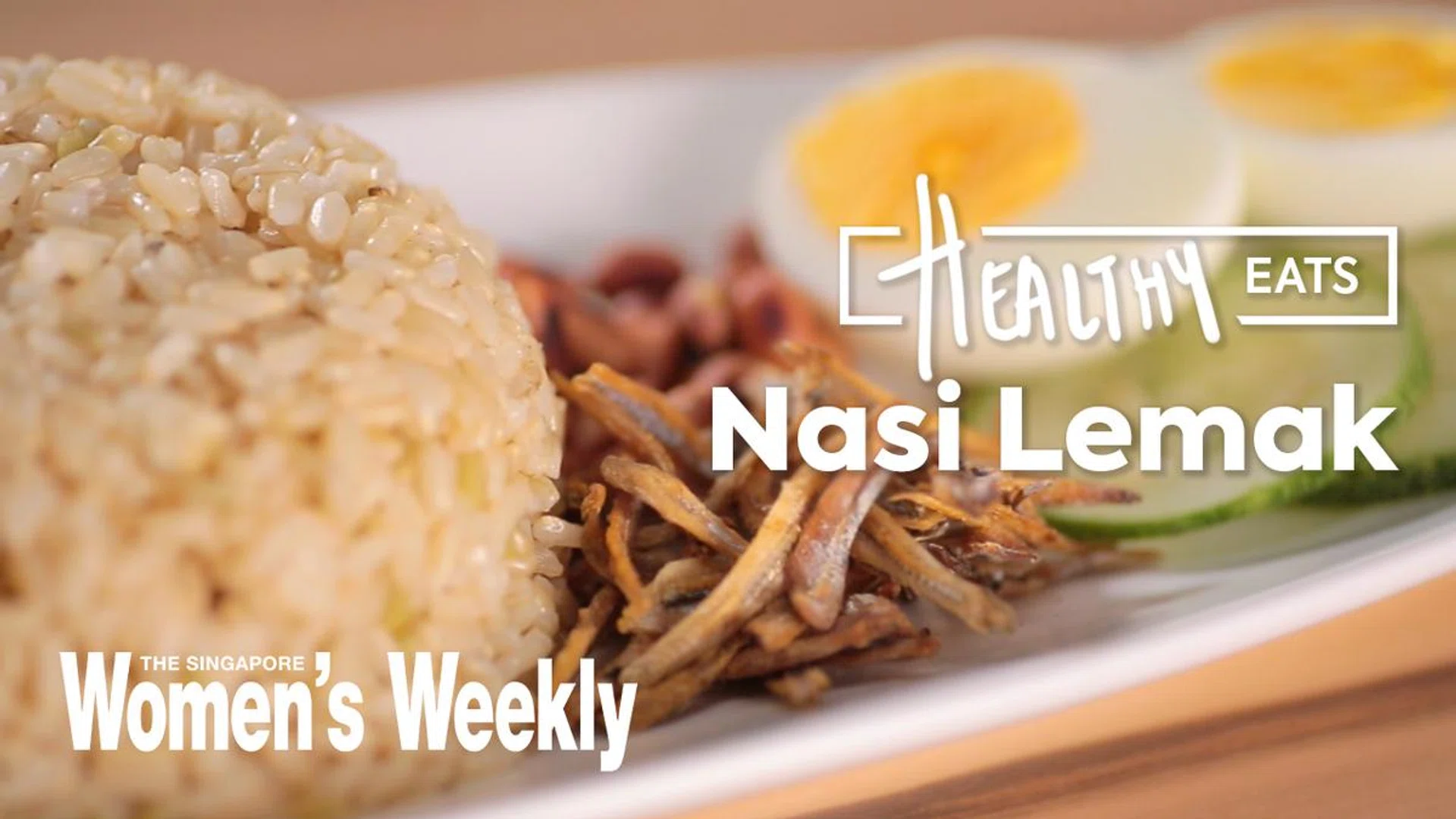 A regular nasi lemak can get up to nearly 900 calories, especially if you add a piece of fried chicken. If you love nasi lemak but don't want the calories, try this healthy version by chef Alexandra Prabaharan. This tasty 398-calorie nasi lemak recipe comes with clever substitutions for ingredients and cooking methods (i.e. to use less cooking oil), so you can still have your fragrant rice dish without the added calories.