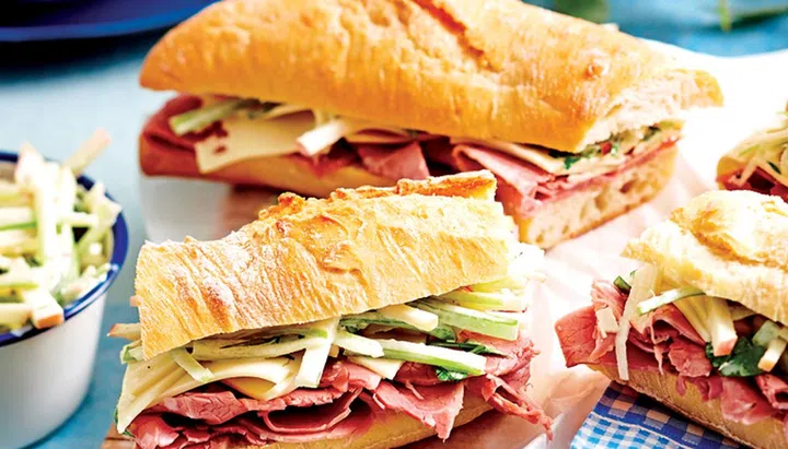 Here's a tasty corned beef and horseradish mayo remoulade baguette that is super quick to put together for an upcoming picnic or quick lunch! The julienned apple and celery give it a refreshing crunch that'll perk you up for the rest of the workday.