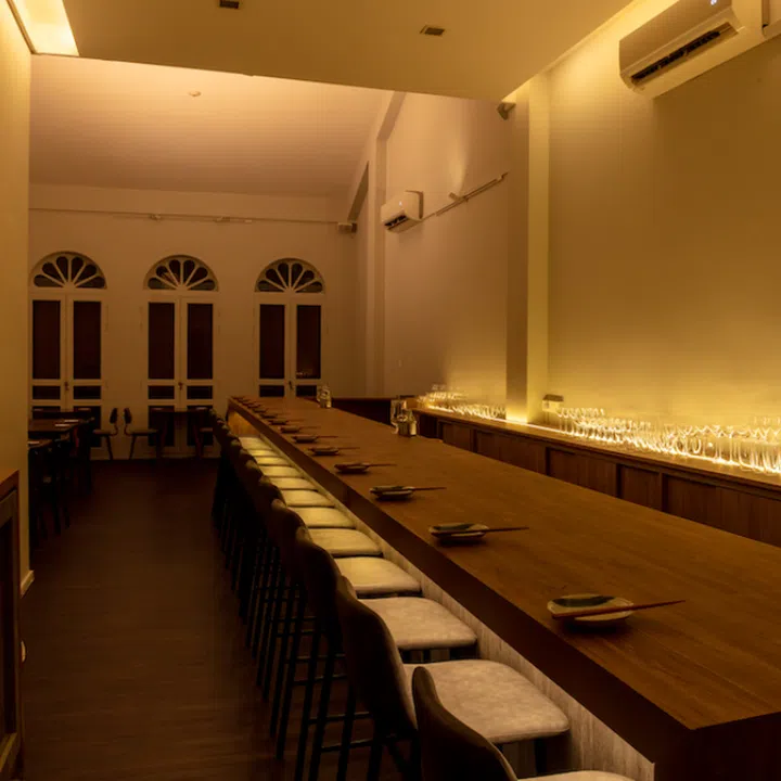Complementing the drinks is simple izakaya fare like tamago maki, gyoza, grilled unagi, ebi tempura and oden. “It’s nothing too serious. This bar is very minimalist,” says Chia. Sit at the long sleek wooden bar and watch the team concoct your drinks. There are also low tables at the side for larger groups.