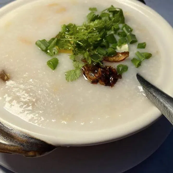 The boat porridge, called Savoury Meat Porridge on the menu, costs RM7. The hearty bowl is packed with ingredients such as cuttlefish, braised nuts and rings of fried pork skin.