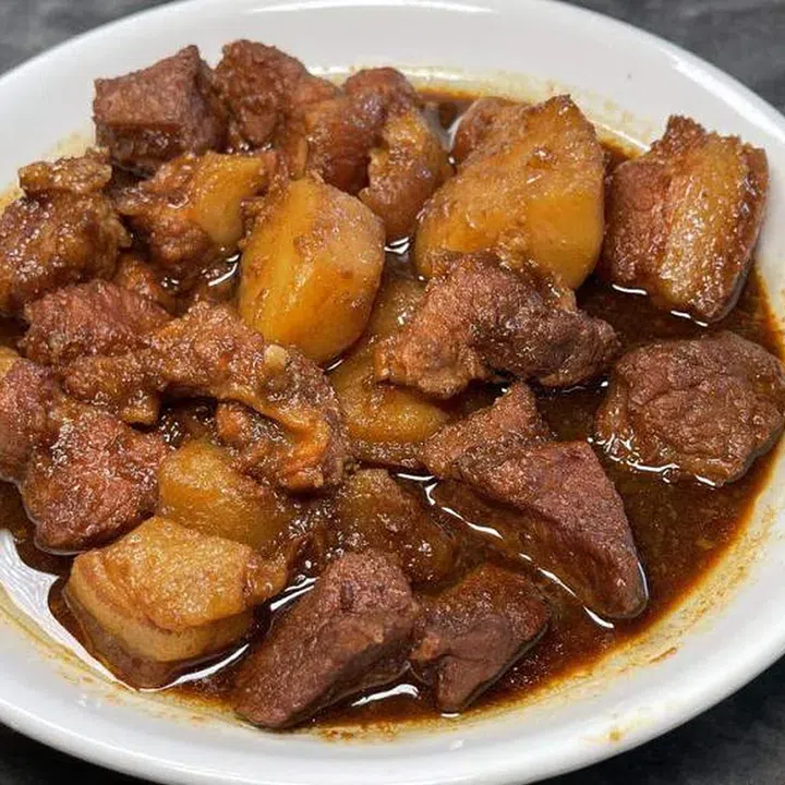 This dish also caught my eye and comprises chunks of pineapple, cucumber and crisp dough fritters covered in inky brown rojak sauce and crushed peanuts, served in a boat-shaped dish. The quality of the rojak sauce easily surpasses that of many famous rojak stalls in Singapore. The deep, rich savoury-sweet fermented shrimp paste shines through, without any fishy smells.