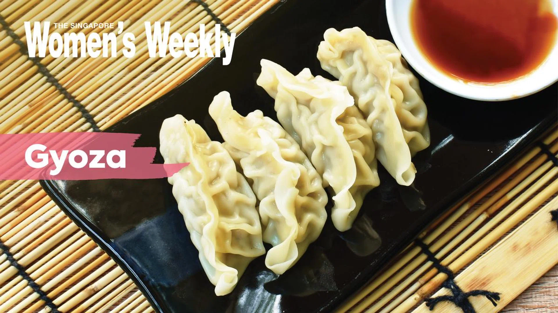 The regular gyoza, the Japanese version of the Chinese jiaozi (dumpling), is usually filled with ground pork, nira chives (or spring onions), onions, cabbage, ginger, soy sauce and sesame oil, and wrapped in a thin dumpling wrapper dough. Get the recipe here.