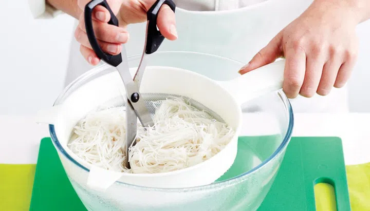 Place noodles in heatproof bowl and cover with boiling water. Set aside to soak 4 to 5 mins until tender. Drain well and cut roughly.