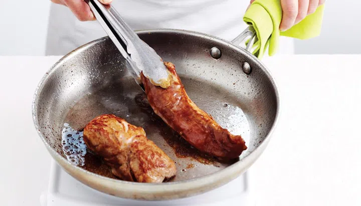 In shallow dish, combine pork and sauce, turning to coat. In a medium frying pan, heat oil on medium. Fry pork 8 to 10 mins, turning on all sides, until cooked through and golden. Rest, loosely covered with foil, until required. Slice thinly.