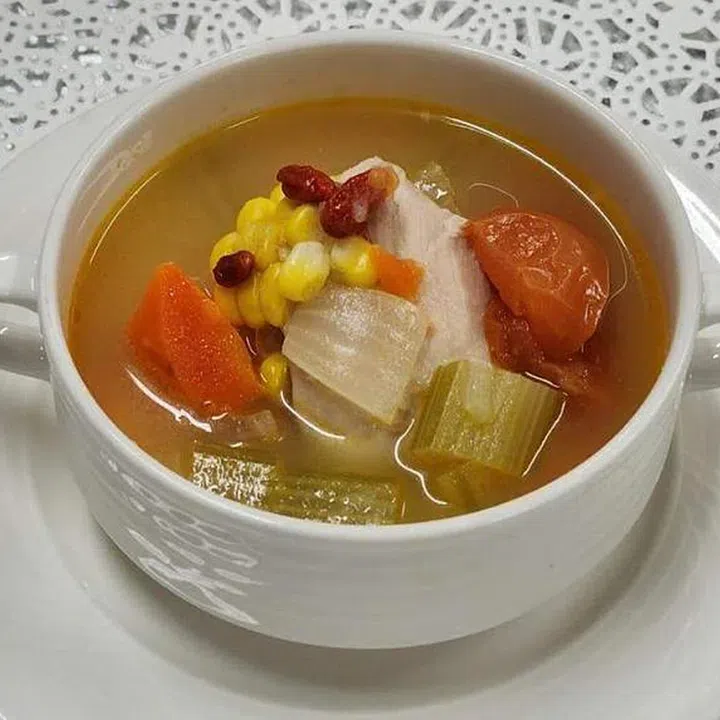 In this recipe by the Food Services Department, Changi General Hospital, this nourishing soup is packed with vitamins, minerals and dietary fibre. For more flavour, blend half of the cooked vegetables before adding them back into the soup. The soup is also suitable for babies, children and the elderly. For a vegetarian version, replace the meat with tofu for protein.