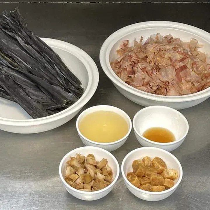 Kombu (dried sea kelp), dried scallops and dried whelk impart umami flavours. When a dish has well-balanced and complex layers of natural flavours, there is less need for salt to improve the taste or cover the gaminess of meat.