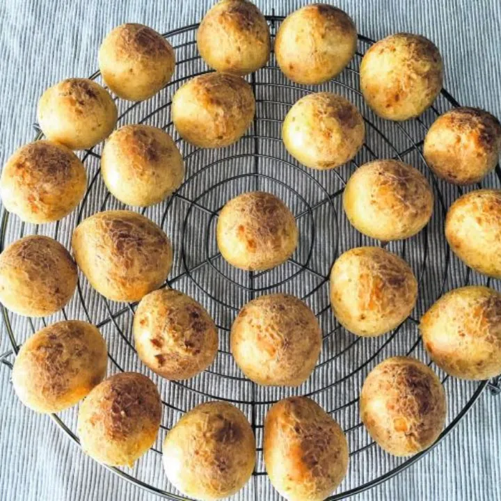 Got some tapioca starch left over from making boba at home? Make this gluten-free bread. It has a mochi-mochi texture and is a popular snack in Brazil, where it is called pao de queijo.