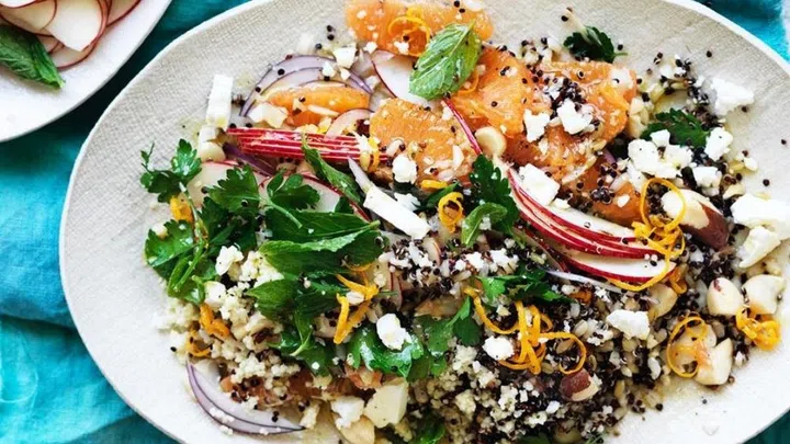 Salads don't have to be unsatisfying and boring. Take this mixed grain salad bowl for instance, which has nutrient-rich grains and herbs. It also gets extra crunch from nuts and a refreshing burst of flavour thanks to the addition of fruits.