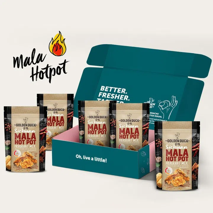 Breaking out the snacks during CNY? Get yourself (or your fellow mala-loving friends and family) the Sichuan Mala Hotpot snack box ($39) from The Golden Duck Co., which has mushroom crisps, beancurd skin, and fish skin that's coated in a seasoning made with 17 herbs and spices.
