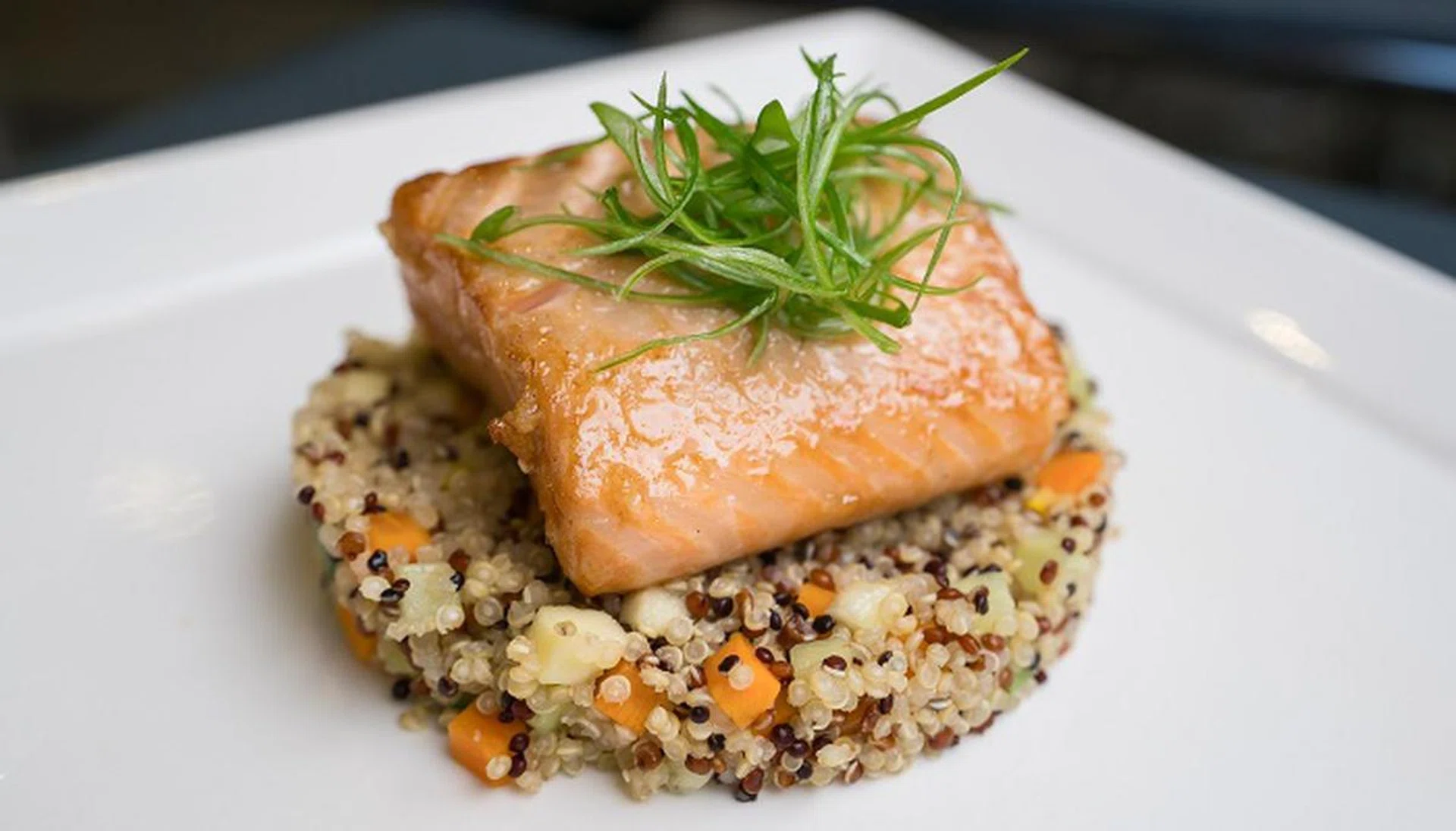 Marinated Salmon On Vegetable Quinoa