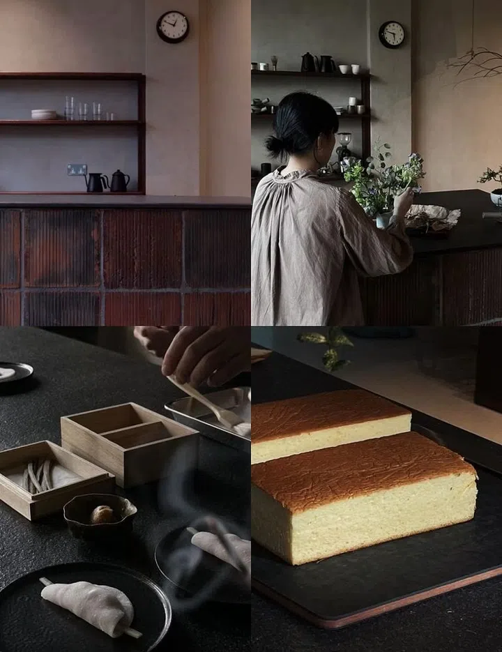 Phay adds that the cafe was envisioned to be like a “home that reveals itself” to wandering visitors. She adds: “The raw space was first visualised as a house before each zone was assigned its function – such as the open kitchen, living, and dining rooms. It is inspired by century-old Japanese guest houses with their Machiya-style entrances.” Within the dark and muted space, visitors will get large window-framed viewings of the stone wall outside the building.