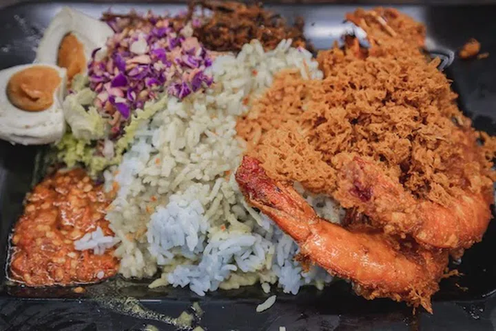 Kerabu.sg is fronted by Malaysian comedian and host Shuk Sahar. The nasi kerabu-focused brand seems to only be available via online orders but you can follow its Instagram to find out when they will be hosting an in-place booth to tuck into the dish without much waiting. One option they just released in early January 2024 is the Nasi Kerabu Platter. It retails for $38 and feeds four to five pax. According to an older video, the nasi kerabu comes with either chicken, lamb or beef.