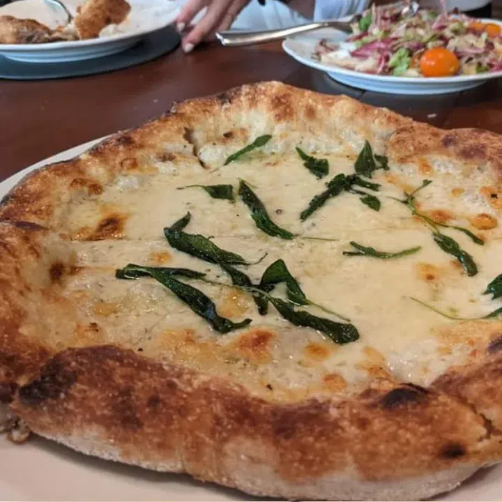 Another lean pizza is the Bianca, which has a blend of creamy fontina, mozzarella, truffle-scented sottocenere cheese, which has been aged beneath a layer of ash. The blend of these cheese yield a mix of saltiness, honeyed sweetness and butteriness, coupled with fragrance emanating from the leaves of fried sage.