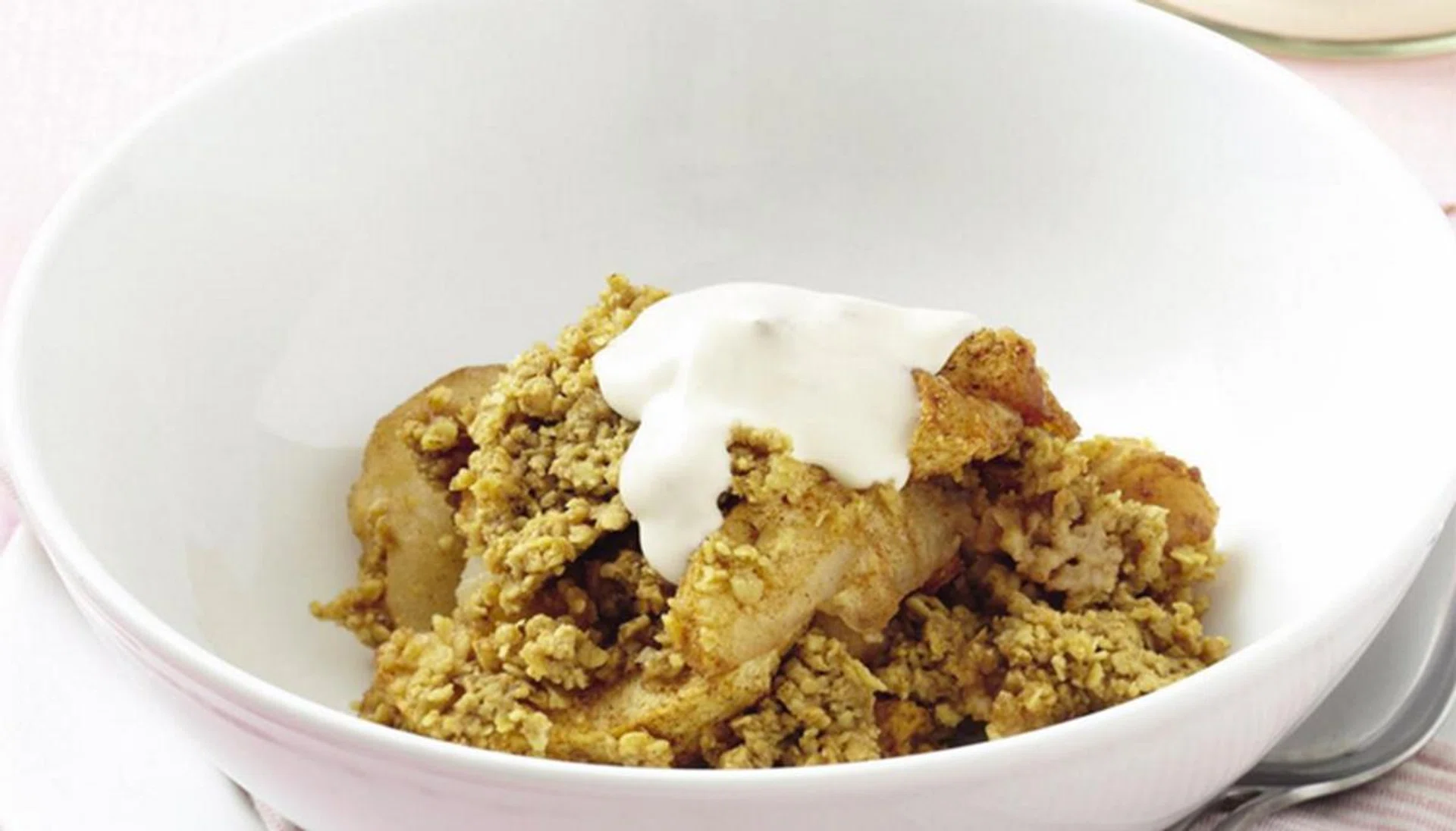 Put a sweeter twist on the classic ploughman’s pie with this hearty parmesan apple crumble!