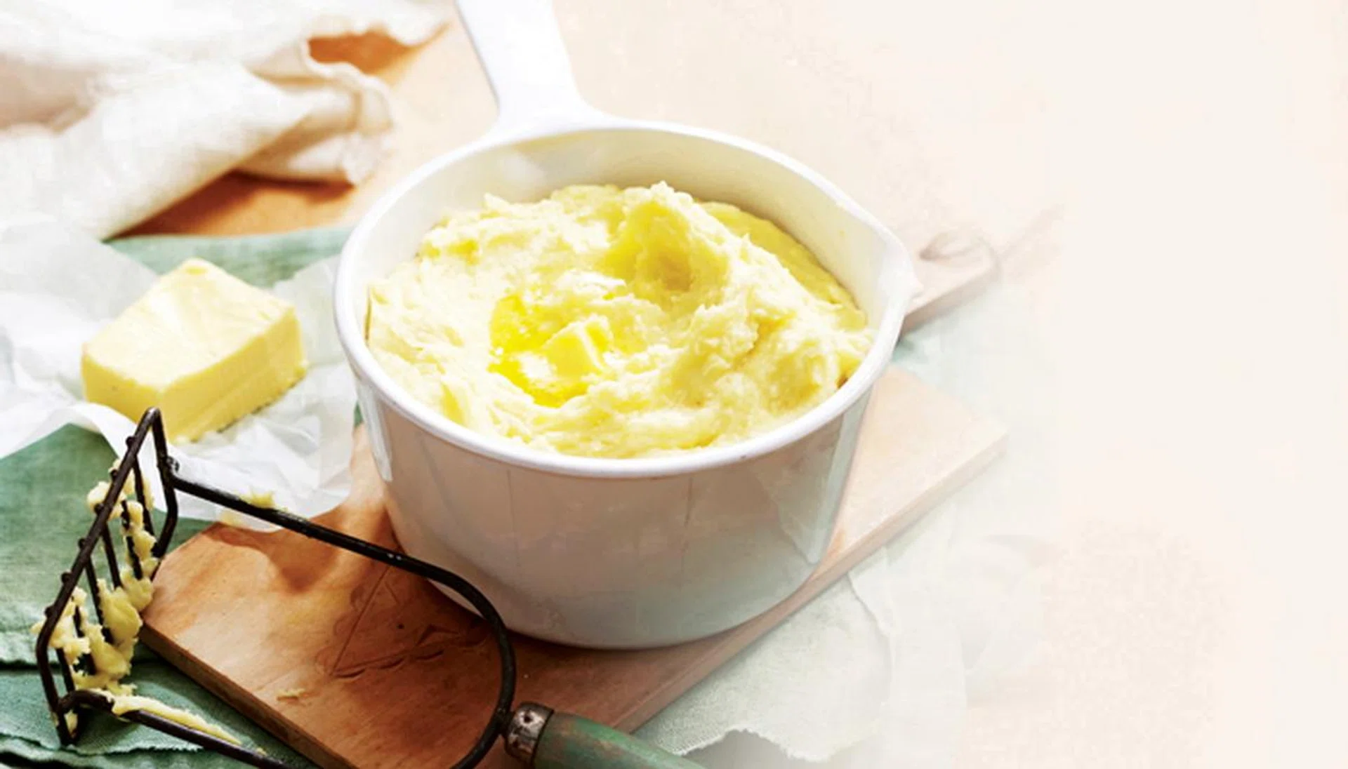 02. Mash well then add cream and butter. Season to taste. Beat with a wooden spoon until smooth and fluffy.