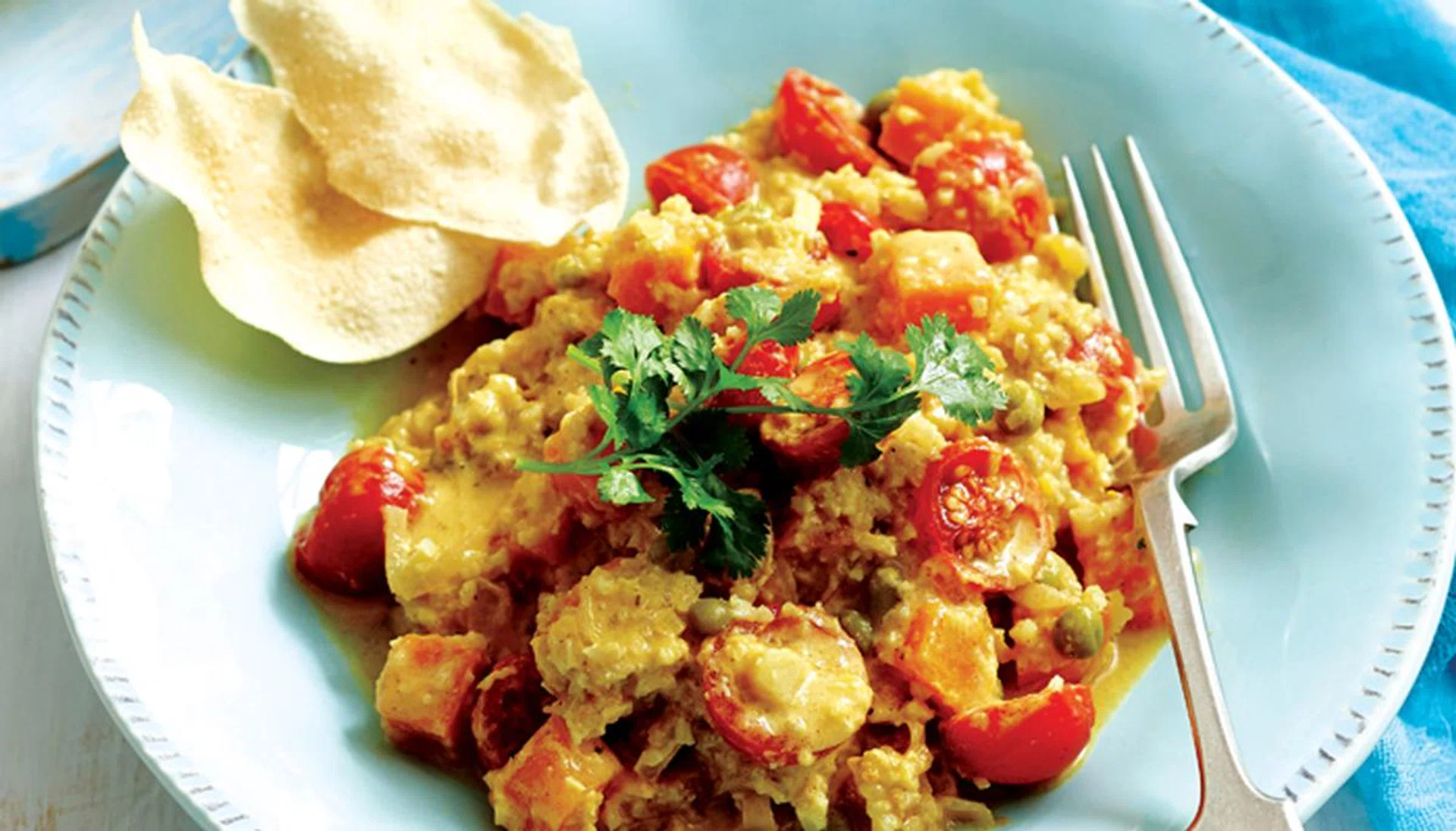 03. In a food processor, pulse cauliflower until chopped to size of rice grains. Stir through curry sauce and cook, covered, a further 10 to 15 mins, until tender.