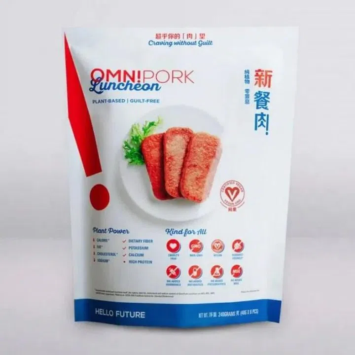 OmniPork Luncheon contains cholesterol and has much lower calories, fat and sodium than regular luncheon meat. There are also no added hormones, antibiotics, MSG or preservatives like harmful carcinogenic nitrate.