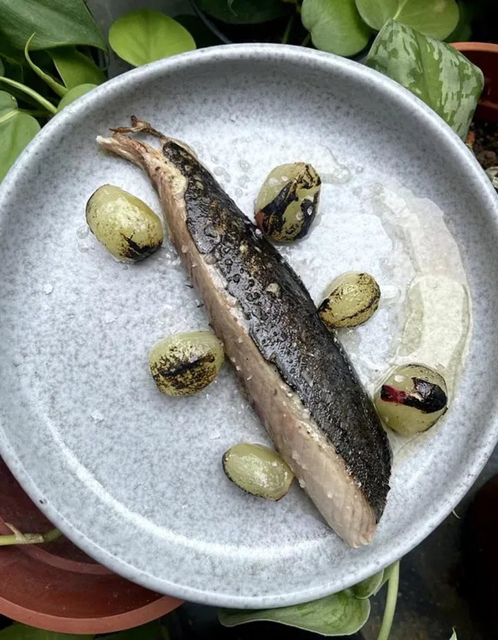 Torched tuna with grapes marinated in balsamic vinegar: “The combination of flamed tuna (pictured) and the acidity of sweet grapes is mindblowing.”