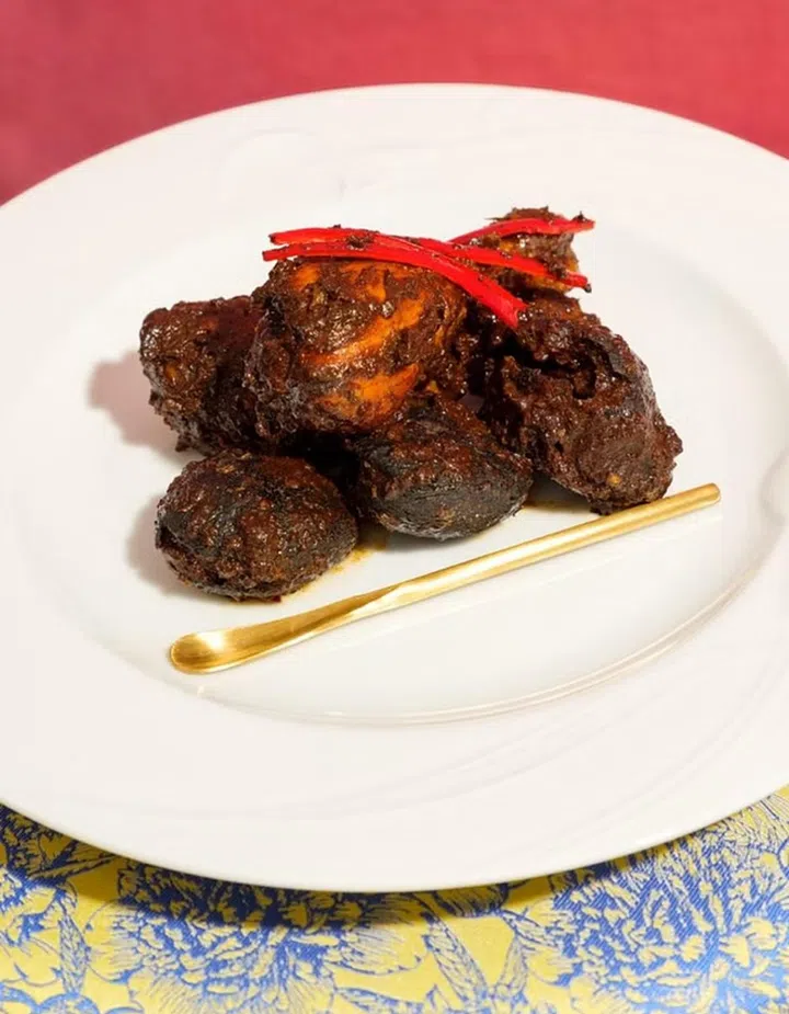 Ayam buah keluak: “I have a serious obsession with buah keluak (pictured). I love the nutty, slightly bitter, almost dark chocolate flavour. I love how it adds a different dimension to other ingredients, like pairing it with foie gras, or in a dessert with dark chocolate. I love it in fried rice and I love it as a buah keluak oxtail rendang.”