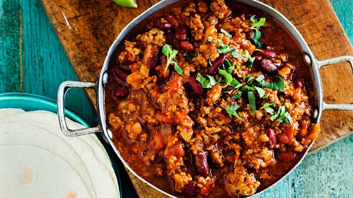 This tasty Mexican stew, which is basically chilli with meat and tomatoes, is a great way to spice up your family meal. Pair it with rice, tortilla chips, or baked potatoes.