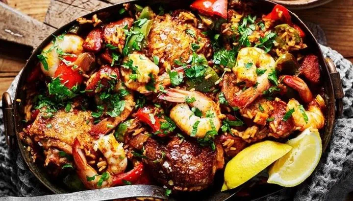 Take inspiration from Creole cuisine with this hearty jambalaya dish chock full of prawns, chicken, chorizo sausage, and more.