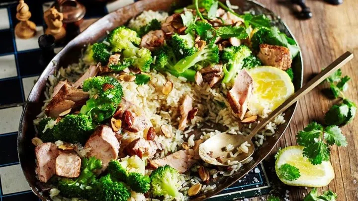 Starring juicy seasoned salmon fillets, broccoli, and fragrant jasmine rice cooked with broth and aromatics, it’s a healthy yet flavoursome dish everyone will love. You can also substitute broccoli with your green of choice.
