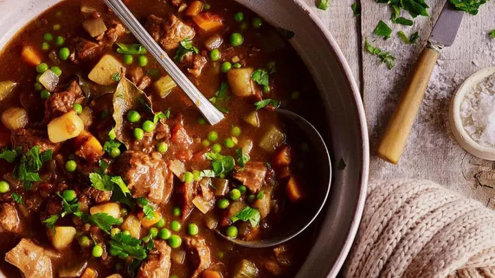 Served with potatoes, onions, tomatoes, celery, and lean beef, this hearty, slow-cooked beef and vegetable soup makes a fantastic one-pot meal that will satisfy the whole family.