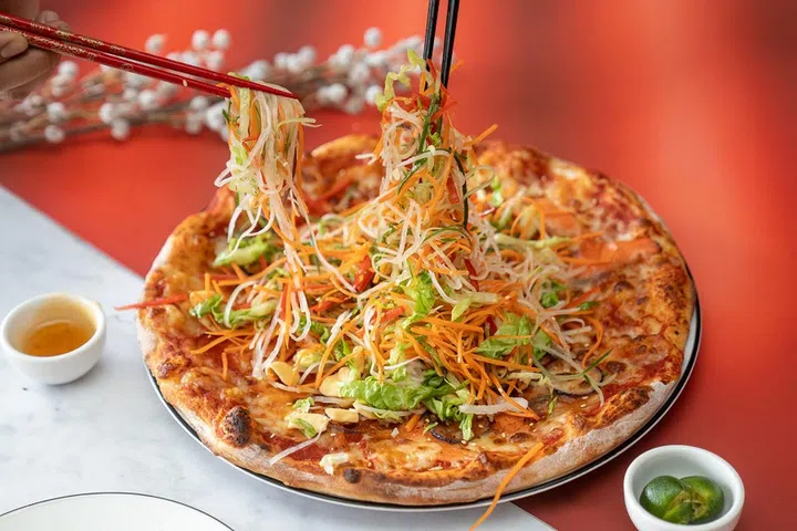 Here's an unconventional idea for your lohei — PizzaExpress' Yusheng Pizza ($38++ for a 14-inch pizza).