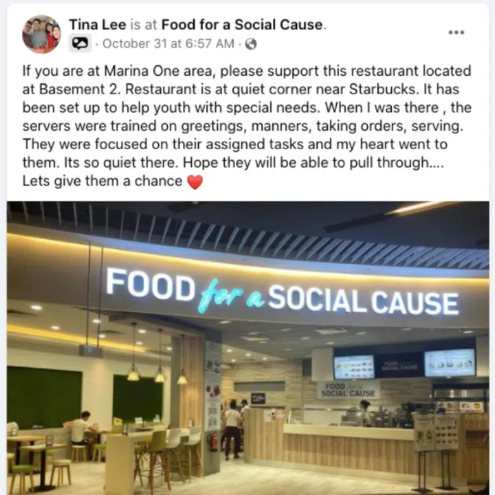 Singapore Fashion Runway founder Eileen Yap left a comment thanking Tina for her post, adding: "We hope our youths with special abilities get to serve all the customers and grow their dreams too!"