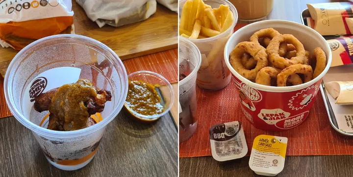 And if you're feasting with a couple of friends or family, there's the Share Share Bucket ($13.90), which has 12 nuggets, five Mexican drumlets, and large onion rings served with three sauces - barbeque, Japanense curry, and rendang.