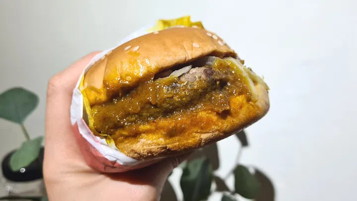 The Double Rendang Beef Burger ($6.75 a la carte) has been a well-loved classic over the years, and stars two flame-grilled beef patties so you get more bite. They're dressed with nothing but a generous lashing of rendang sauce, and slices of fresh pungent onions that cut through the richness.