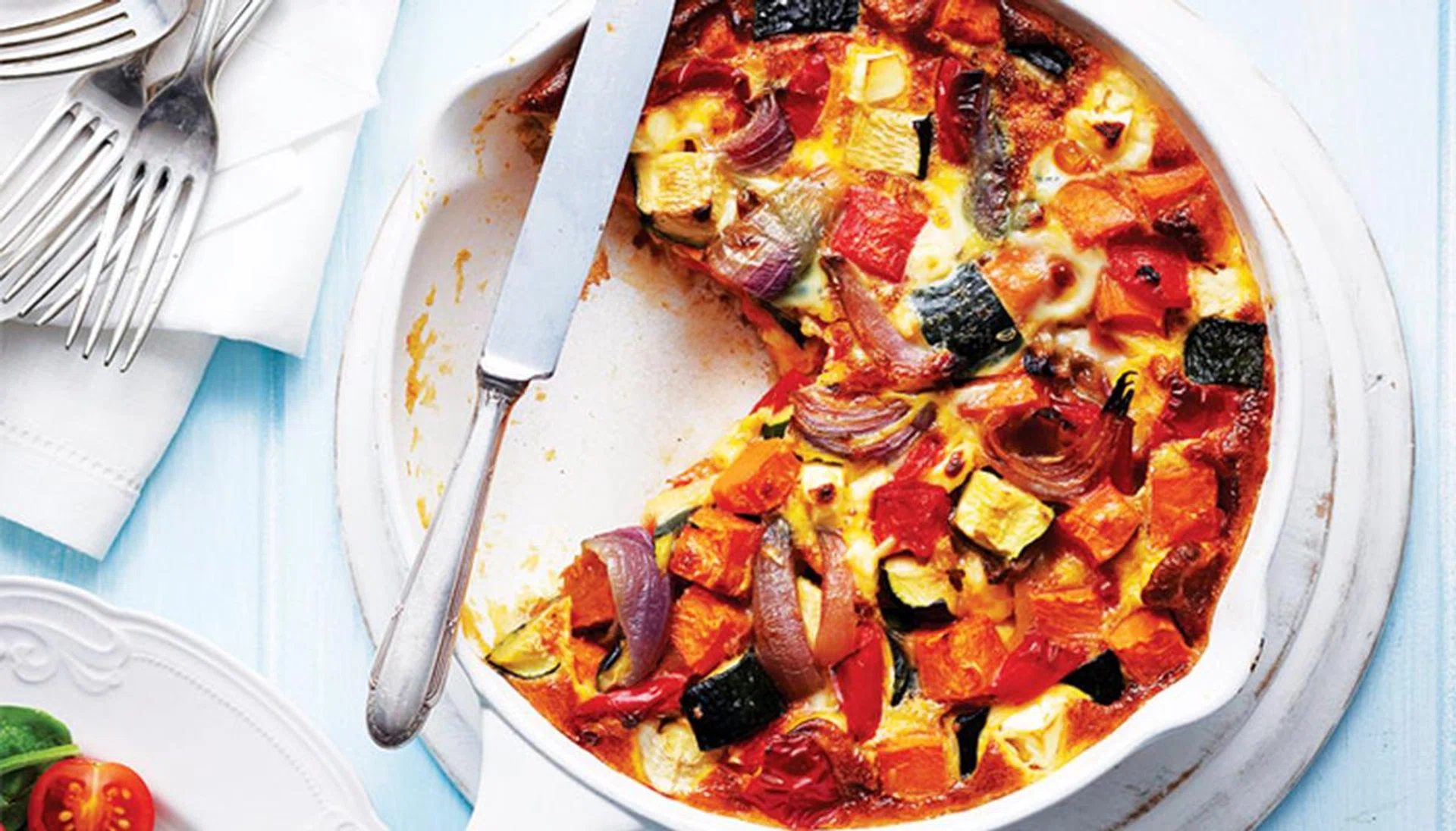 Make this lovely roast vegetable frittata when you have too many leftover vegetables in the fridge!