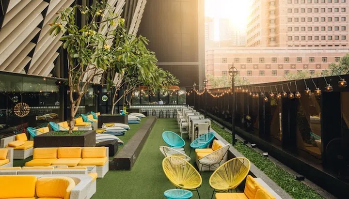 The space also comprises a restaurant and lounge, so you can dine indoors before heading to the rooftop terrace for a nightcap.