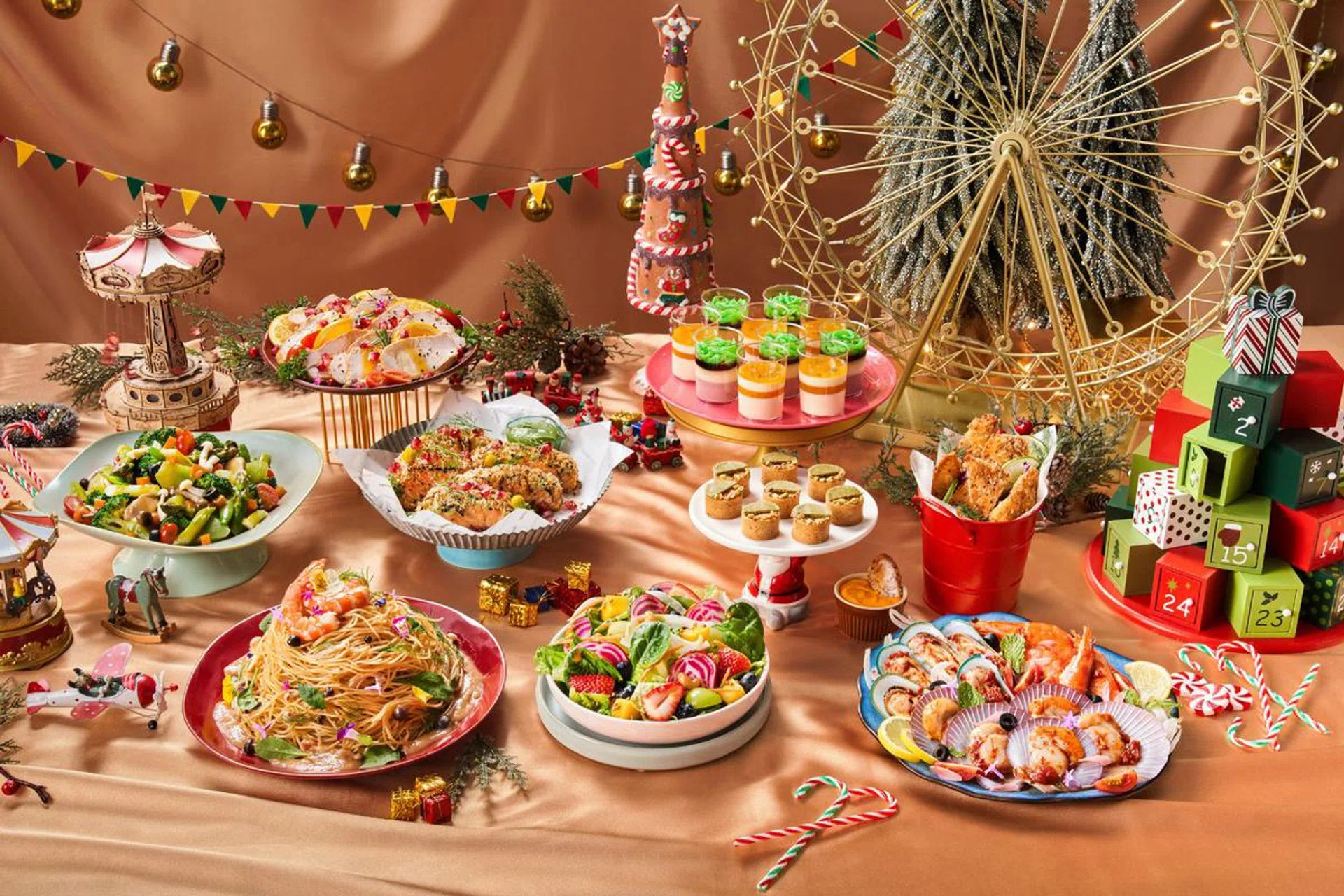 For the ultimate visual feast, opt for the Carnival Showstopper, which comes with a complimentary Carnival Wonderland thematic setup (below), along with 16 delectable dishes (including a beverage).