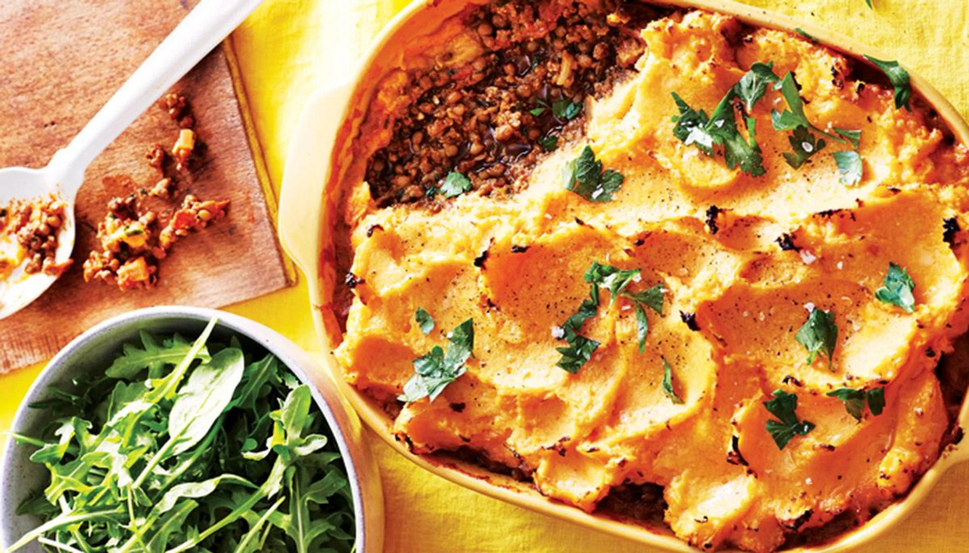 This Spiced Lamb Cottage Pie is food for the soul. Delve into the sweet potato topping and you'll be greeted by a fragrant mixture of lamb mince and lentils