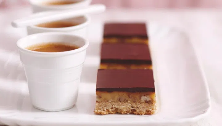 This Chocolate Caramel Nut Slice delivers the richness of chocolate, the sweetness and chewiness of caramel, and the crunch of pecans.