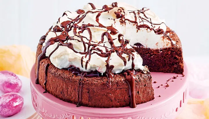 Meringue and chocolate makes a beautiful and delicious combination. And this cake will draw all the “oohs” and “aahs” when you serve it up!