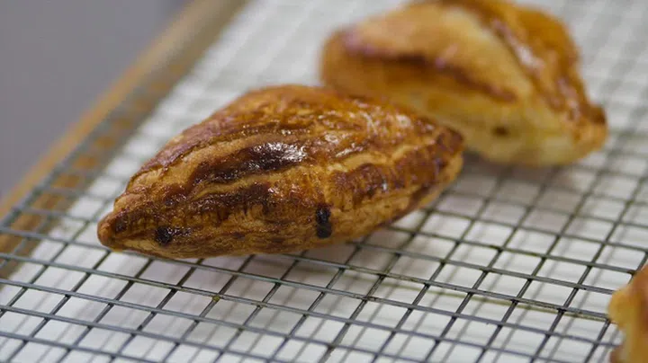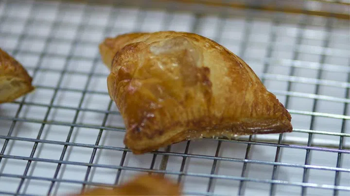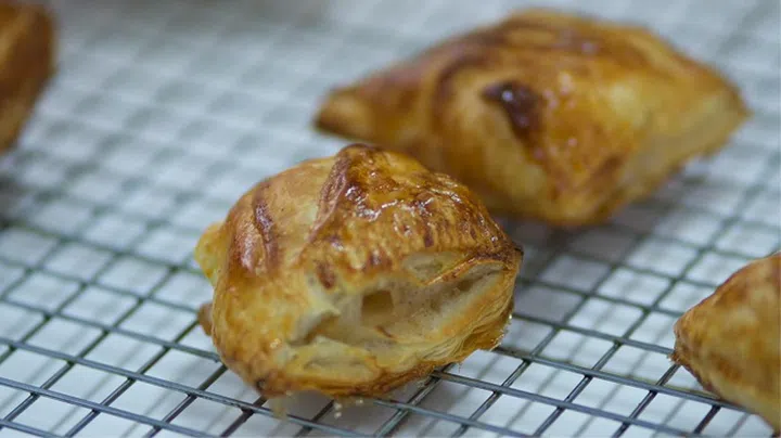 We cut one prata from each brand in half, filled each pastry with the same apple pie filling and glazed them with the same egg wash. All six apple pie puffs were baked at 200 C, for around 20 minutes. Get the full recipe here!